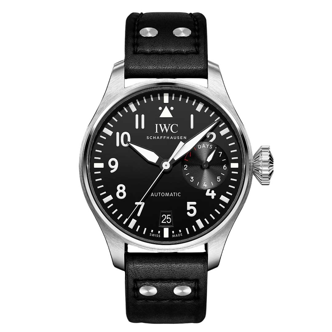 It features an efficient Pellaton automatic winding system with parts made from black or white ceramic. With the help of two barrels, it builds up a reserve of 7 days. The display at “3 o’clock” indicates the time remaining until the movement comes to a stop. The Big Pilot’s Watch has a date display at “6 o’clock” and the central seconds essential in any watch used for flying.