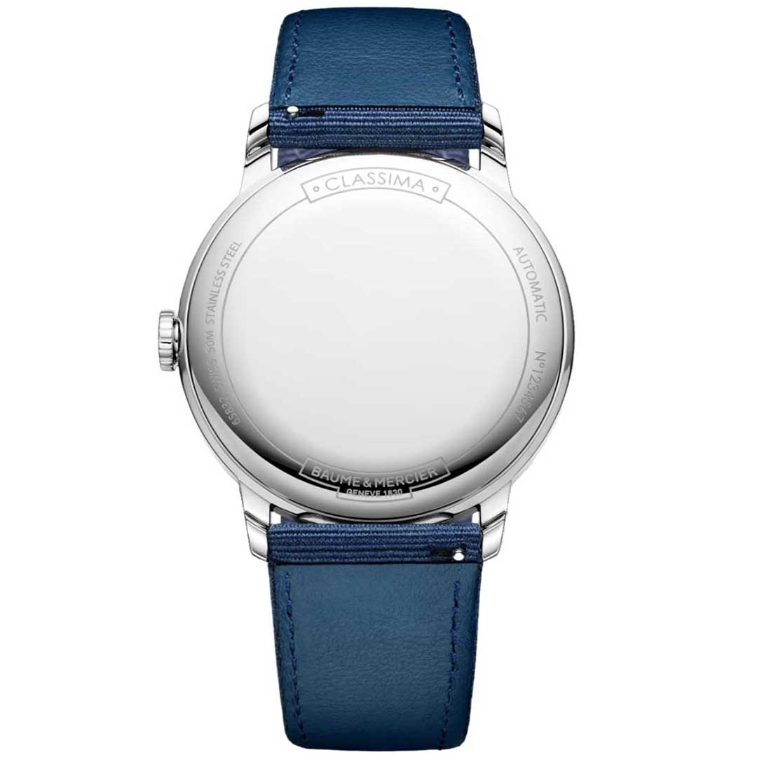The Classima 10608 offers the ambitious professional a sophisticated luxury timepiece thanks to its slate-gray dial and blue hands. This piece is mounted on an interchangeable blue canvas strap, lending it a casual style, ideal also for weekends.