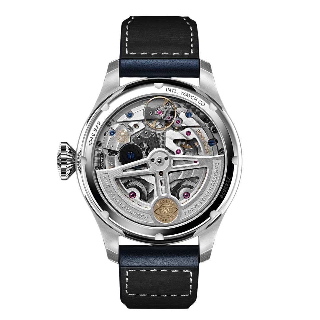 The Big Pilot's Watch Perpetual Calendar features a stainless steel case, a blue dial, rhodium-plated hands and a blue calfskin strap. The perpetual calendar automatically recognizes the different month lengths and the leap years, and will not require a manual adjustment until 2100.