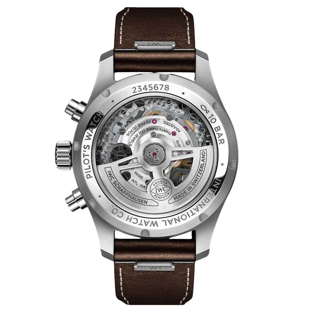 Since 1994, chronographs have been a mainstay in IWC’s Pilot’s Watches collection. The dial layout with various counters not only emphasises the distinctive instrument look; the mechanical stopwatch function also offers virtually unlimited applications in everyday life. The Pilot’s Watch Chronograph 41 in an ergonomic 41-millimetre case size is powered by the IWC-manufactured 69385 calibre.