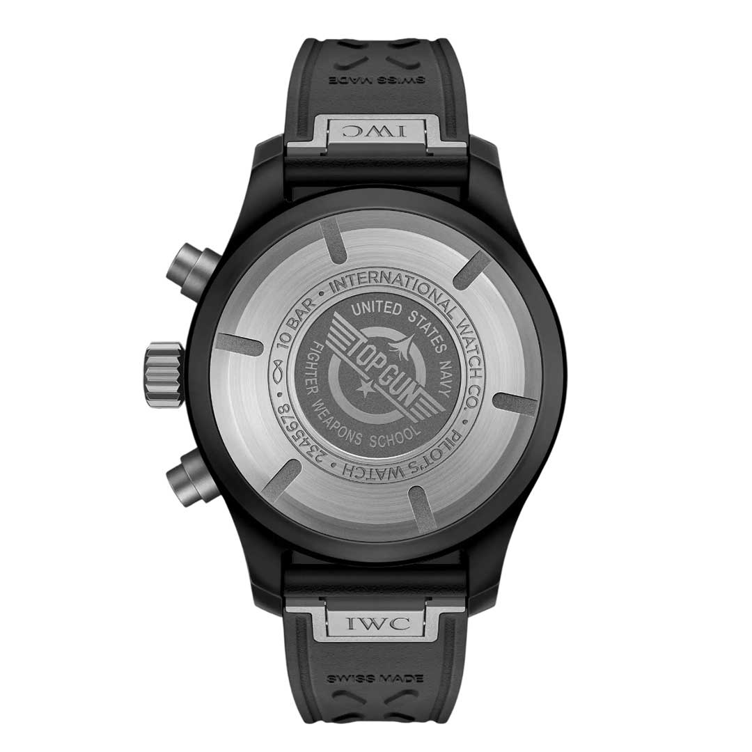 Since the introduction of the IWC TOP GUN line in 2007, black zirconium oxide ceramic has been the signature material of the collection. Based on an elaborate manufacturing process, ceramic cases are not only extremely hard and scratch-resistant but also lightweight and corrosion-resistant. The Pilot’s Watch 41 TOP GUN combines a “Jet Black” ceramic case in an ergonomic 41 millimetres size with a black dial and a black rubber strap. The crown and pushers made of titanium. A titanium case back complements the sleek and sporty chronograph design. The timepiece is powered by the IWC-manufactured 69380 calibre. The robust and precise chronograph movement in classic column-wheel design is housed in a soft-iron inner case to protect it from the effects of magnetic fields. The versatile sports watch offers a water resistance of 10 bar and is equipped with the IWC EasX-CHANGE® system, which makes it possible to exchange the strap quickly and easily without needing additional tools.