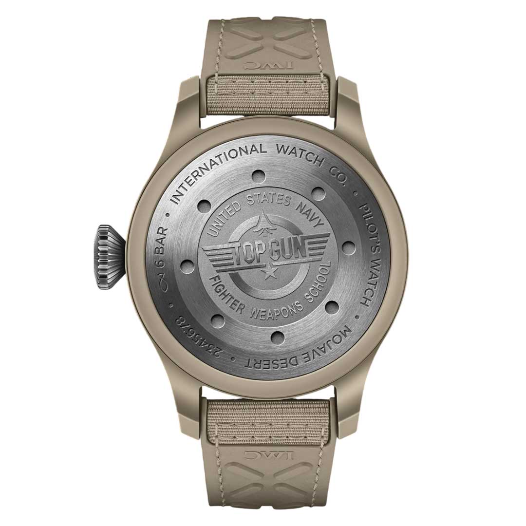 TOP GUN watches are technically sophisticated precision instruments, engineered to perform at their best on the wrists of the US Navy’s most skilled pilots. Hard and scratch-resistant ceramic, in particular, is perfect for daily use in the cramped jet cockpit. With the Big Pilot’s Watch Top Gun Edition “Mojave Desert”, IWC presents the Big Pilot's Watch in a sand-coloured ceramic case for the first time. The striking colour is inspired by Navy pilots' flight suits and the desert landscape around the Naval Air Weapons Station China Lake. The engineering ceramics used here are created in a sophisticated manufacturing process from powdered raw materials that are shaped and then sintered at high temperatures. To create the unique colour tone, zirconium oxide is blended with other metallic oxides in a precisely defined mixing ratio. The dark brown subdued dial and the sand-coloured rubber strap with textile inlay harmonise perfectly with the case. Delivering precision and endurance is the IWC-manufactured 52110 calibre. The automatic Pellaton winding system has been reinforced with ceramic components and builds up a power reserve of seven days in two barrels – more than enough even on extended missions.