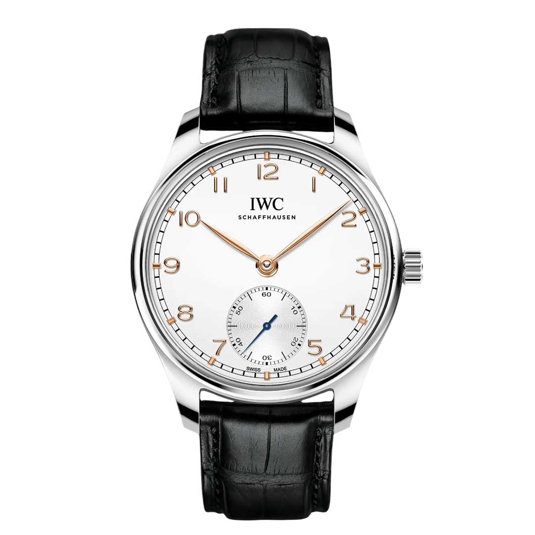 A clearly organized and open dial, with the characteristic minutes scale and the small seconds at "6 o’clock": IWC’s Reference 325 in the late 1930s established a classic design idiom that has run as a common thread through the history of the Portugieser family ever since. Now the timelessly modern design returns to the collection in a new automatic model with a compact case diameter of 40 millimetres. The Portugieser Automatic 40 is powered by the IWC-manufactured 82200 calibre. This robust, high-quality automatic movement has a Pellaton winding system with components made of virtually non-wearing ceramic, which builds up a power reserve of 60 hours. This model features a stainless-steel case, a silver-plated dial, as well as gold-plated hands and appliqués. It is fitted with a black alligator leather strap. Thanks to the newly developed butterfly folding clasp, the watch is particularly comfortable to wear.