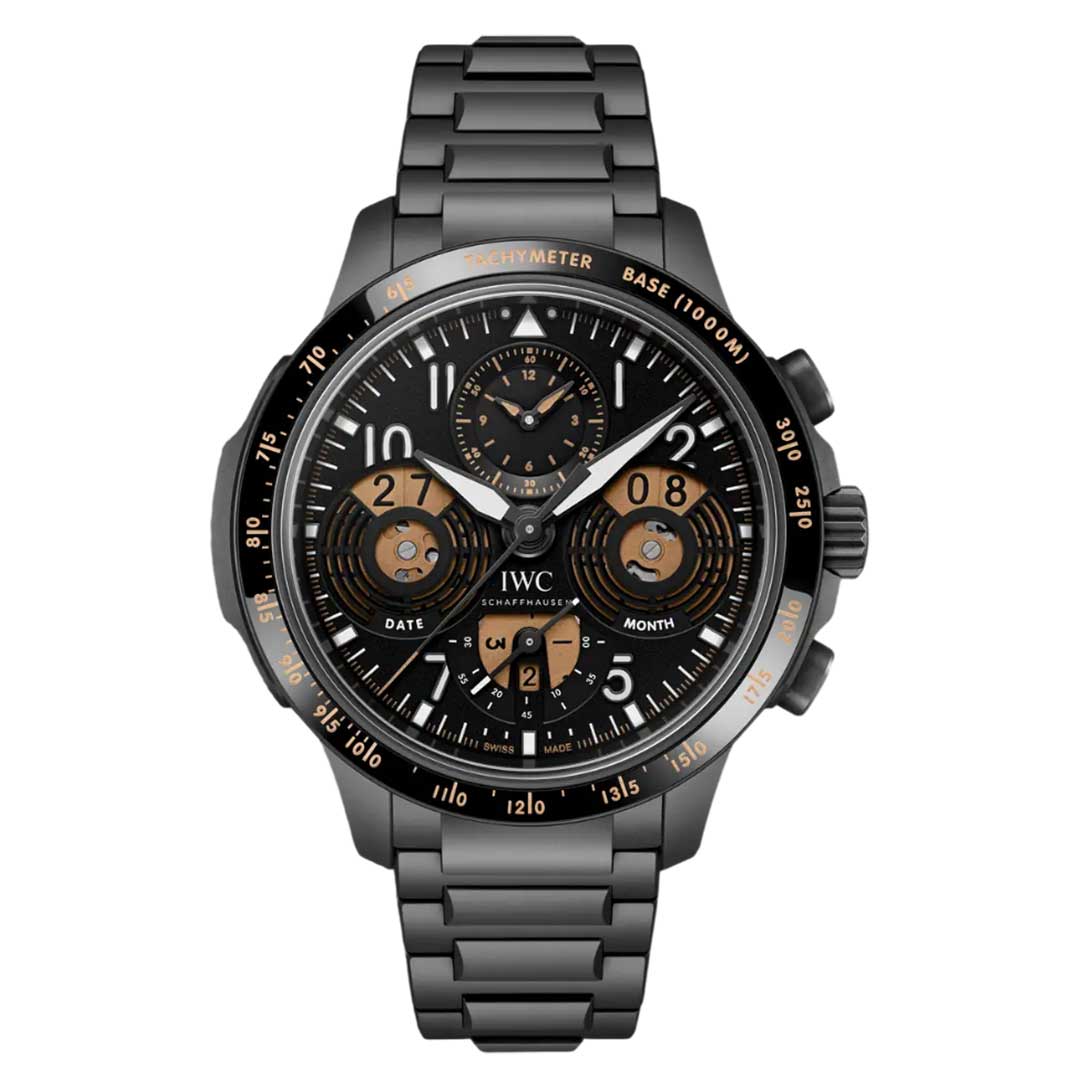 The Pilot’s Watch Performance Chronograph Perpetual Calendar Digital Date-Month combines IWC’s tachymeter-bezel chronograph design with a digital perpetual calendar for the first time.